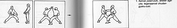 - sanbon kumite: 3 aanvallen, 3 afweren en tegenaanval